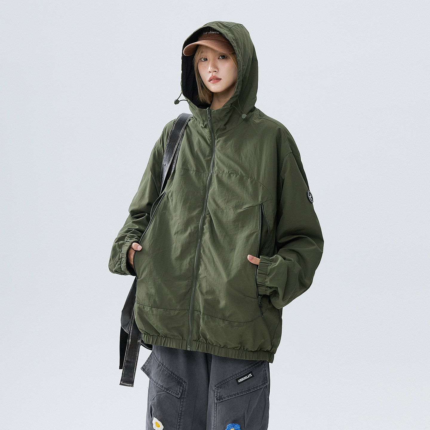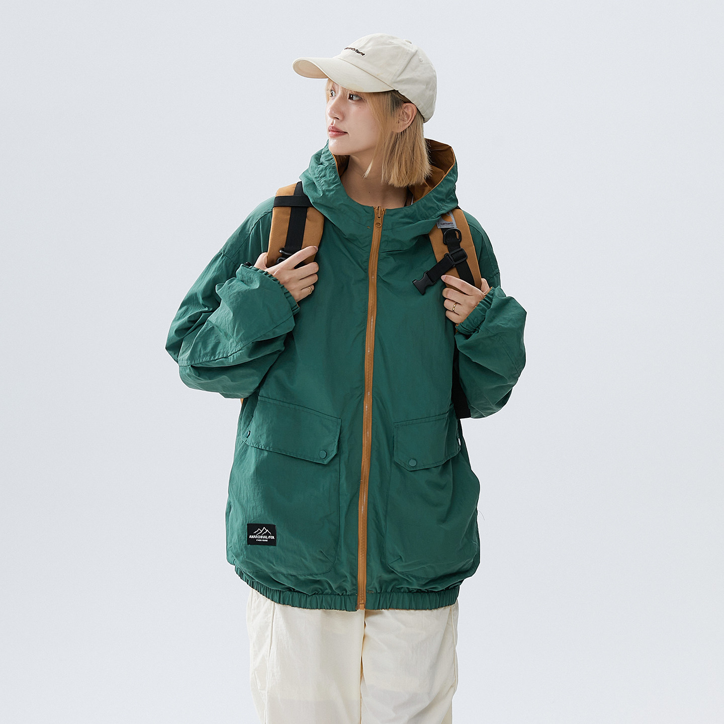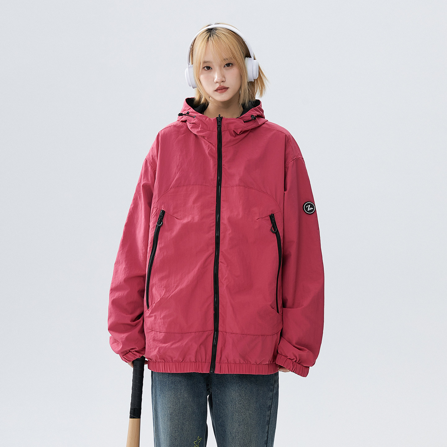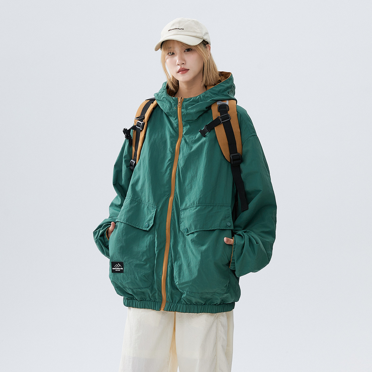 两面穿冲锋衣外套女春秋胖mm大码 夹克潮 宽松学生户外连帽工装