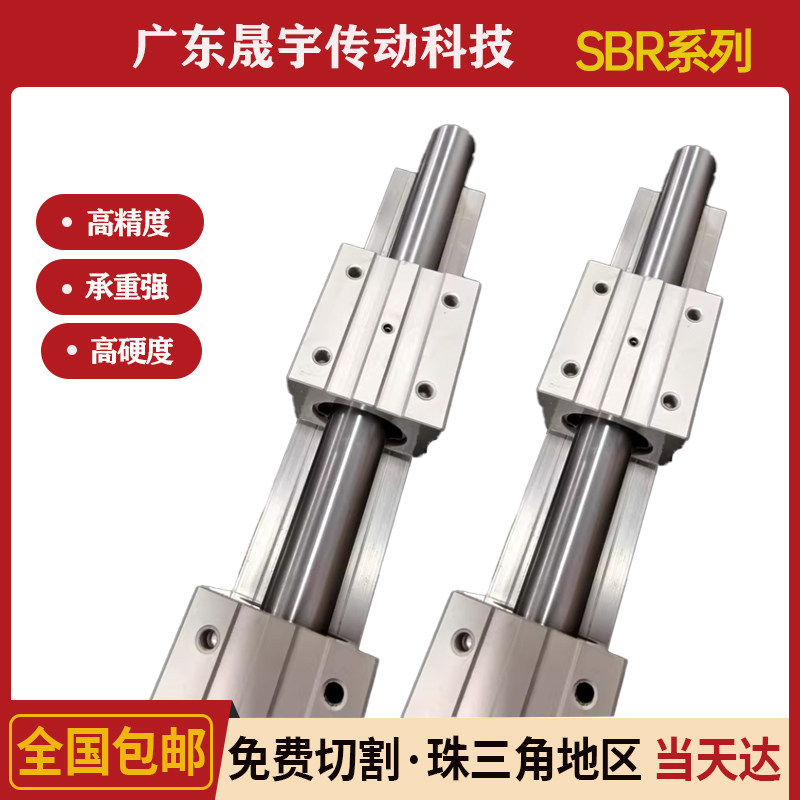 重型木工滑台滑轨滑块镀铬光轴 SBR直线圆柱导轨铝托滑轨20