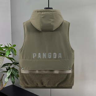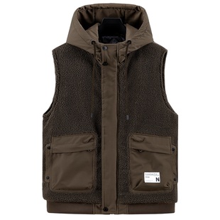 休闲羽绒棉坎肩背心潮牌外套 带帽防寒保暖美式 时尚 羊羔绒马甲男款