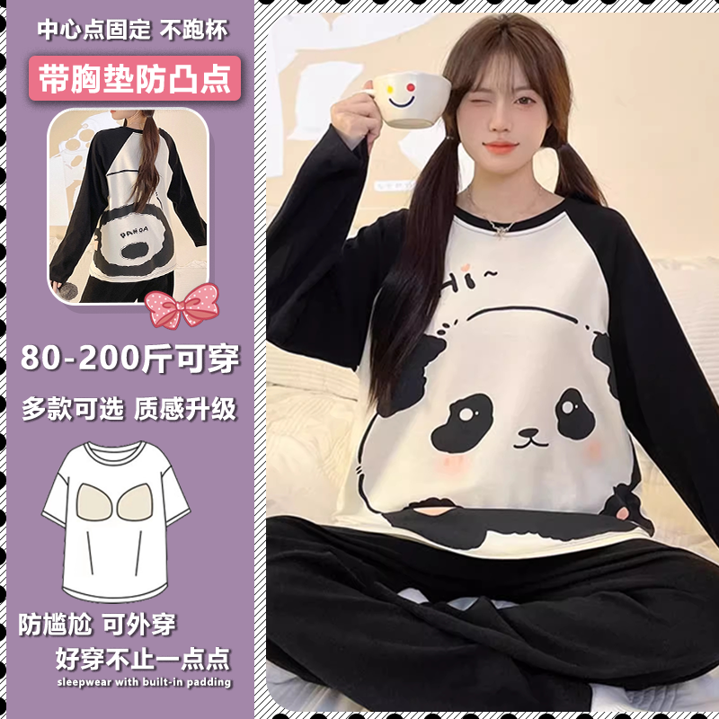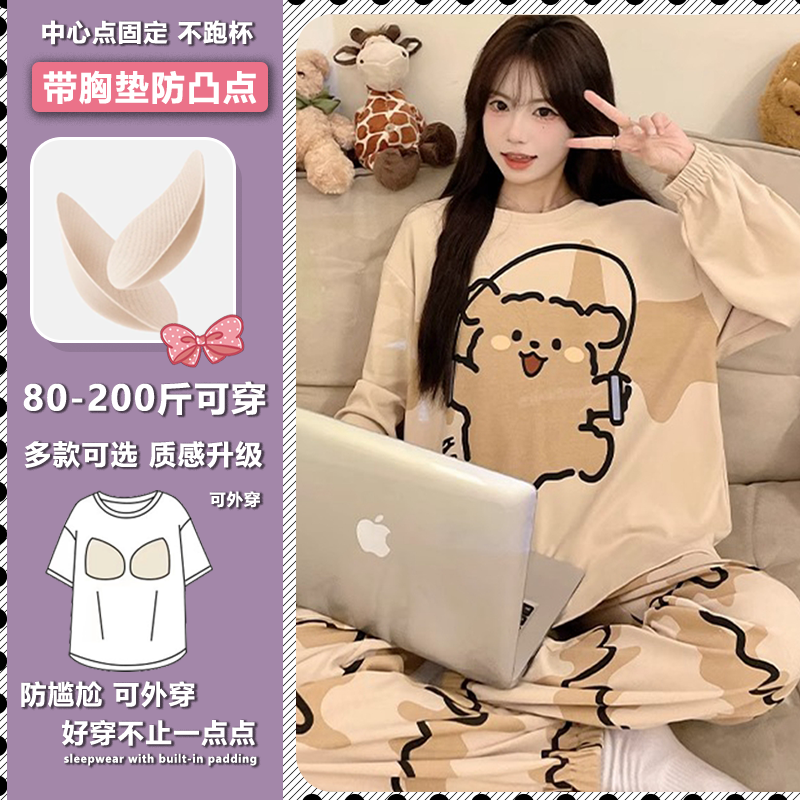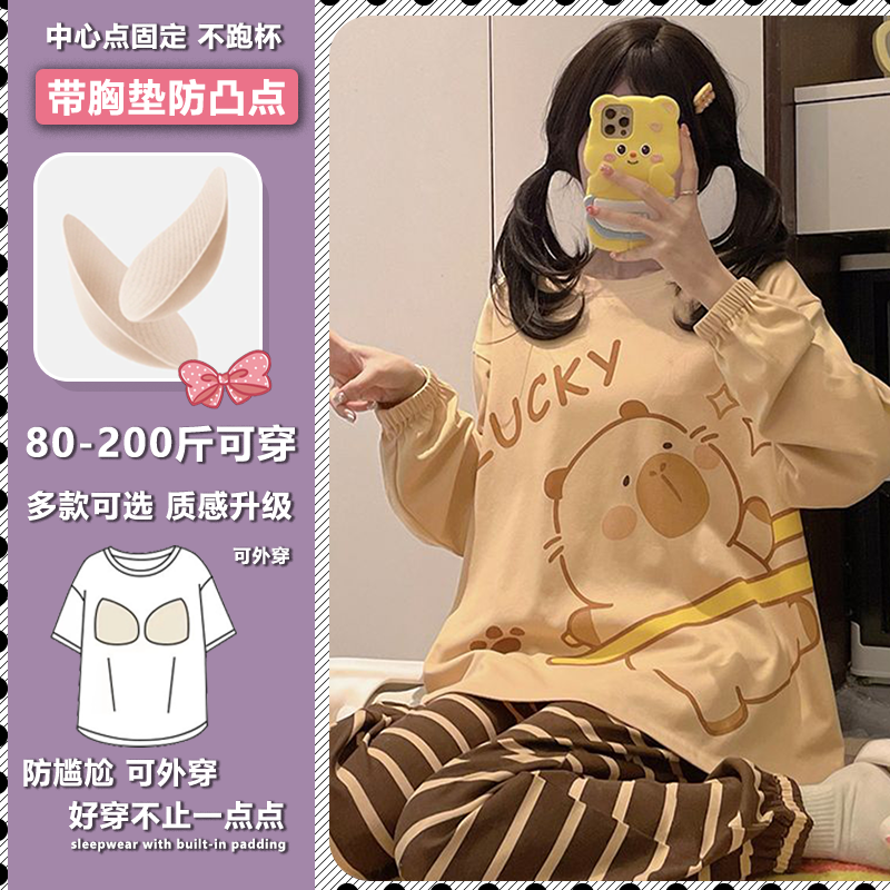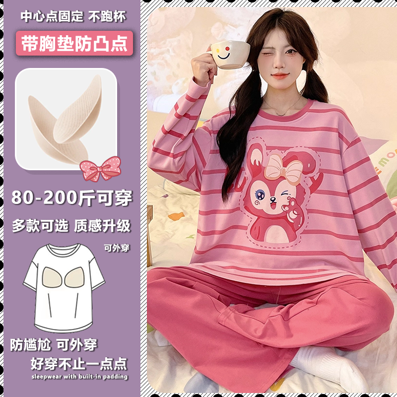 男可外穿情侣家居服套装 秋鹿带胸垫睡衣女纯棉5A抑菌2025秋季 长袖