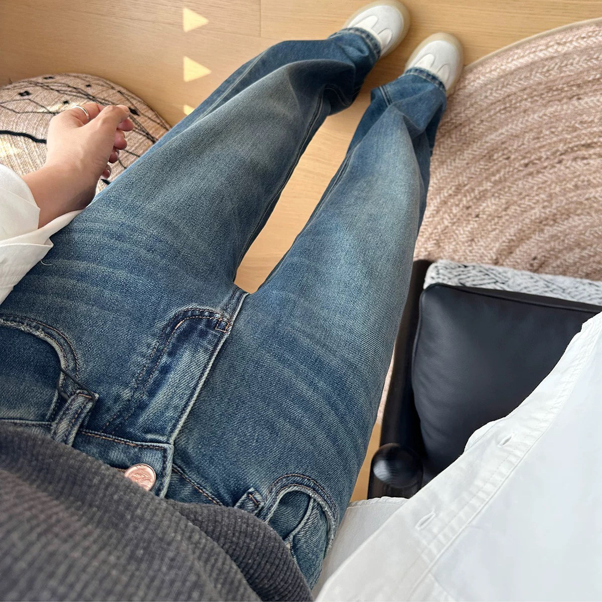 小个子牛仔长裤 复古调腰果花垂顺直筒裤 理想型窄阔腿裤 推自留款