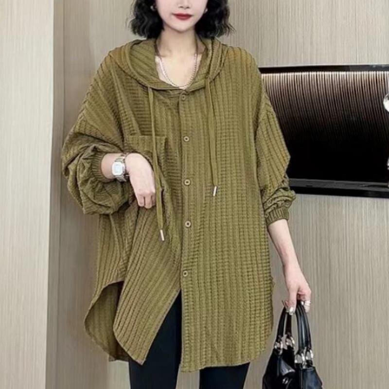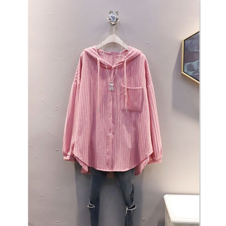防晒衣女夏特大码 微胖mm显瘦减龄休闲洋气遮肉外套 200斤连帽开衫