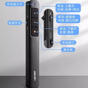 得力ppt翻页笔教师用多功能激光笔演讲遥控笔触屏充电款 投影仪电脑课件专用幻灯片翻页器白板触控笔适用希沃