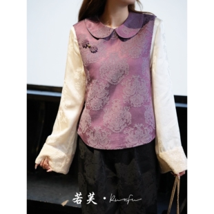 人丝府绸棉宝相纹刺绣改良国风马甲 秋季 若芙| 紫葡萄