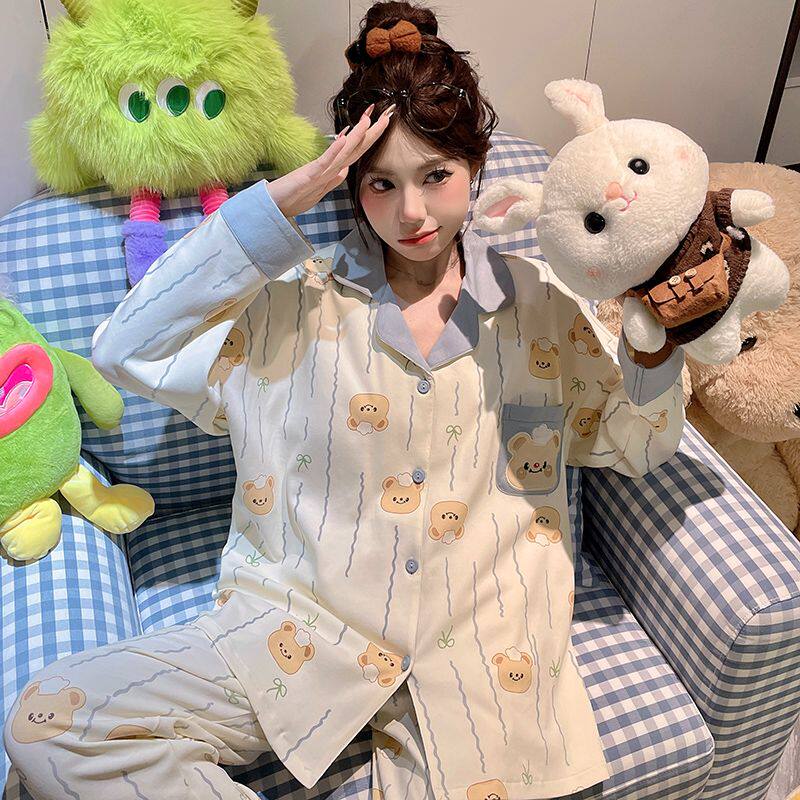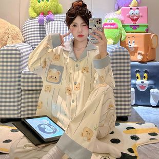 家居服套装 睡衣女春秋款 可爱卡通甜美小熊夏季 带胸垫2025新款 长袖