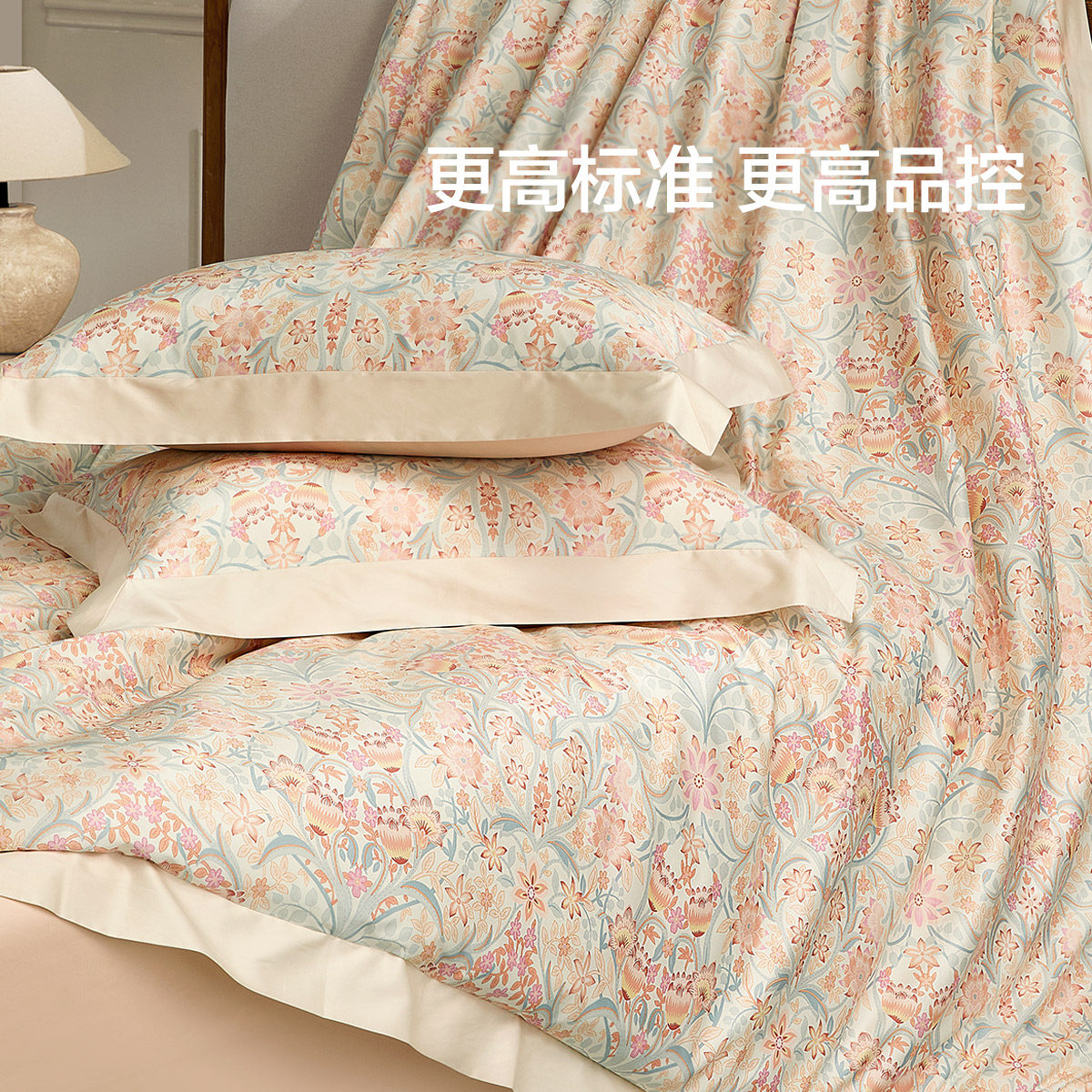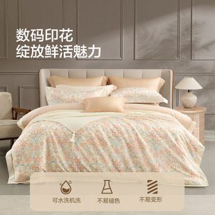水星家纺100支双股长绒棉四件套高端轻奢贡缎套件家用印花25新品