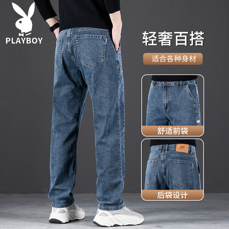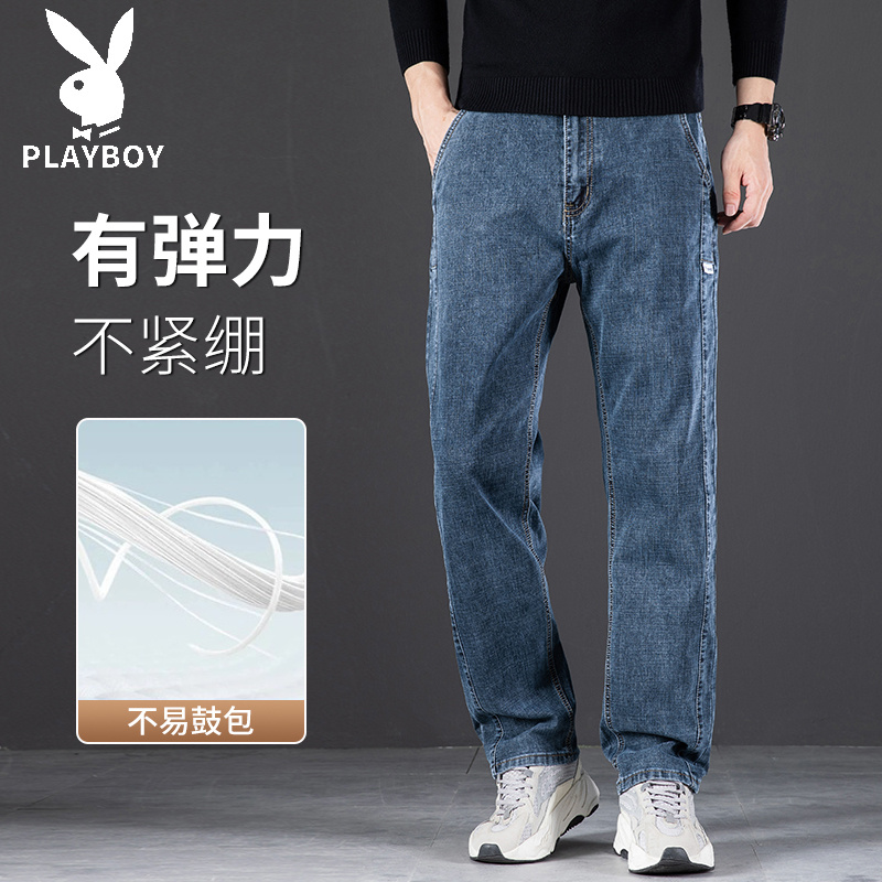 男士 中年男裤 秋季 秋天弹力大码 直筒宽松休闲裤 花花公子高端牛仔裤
