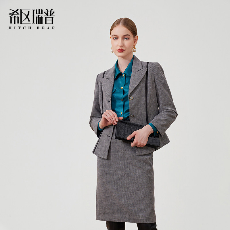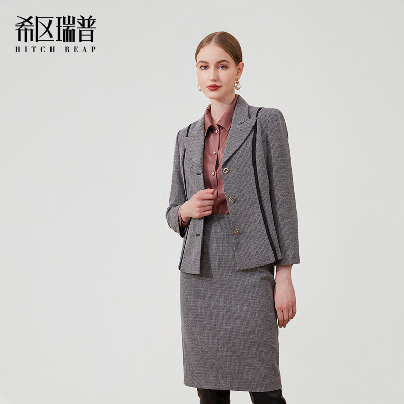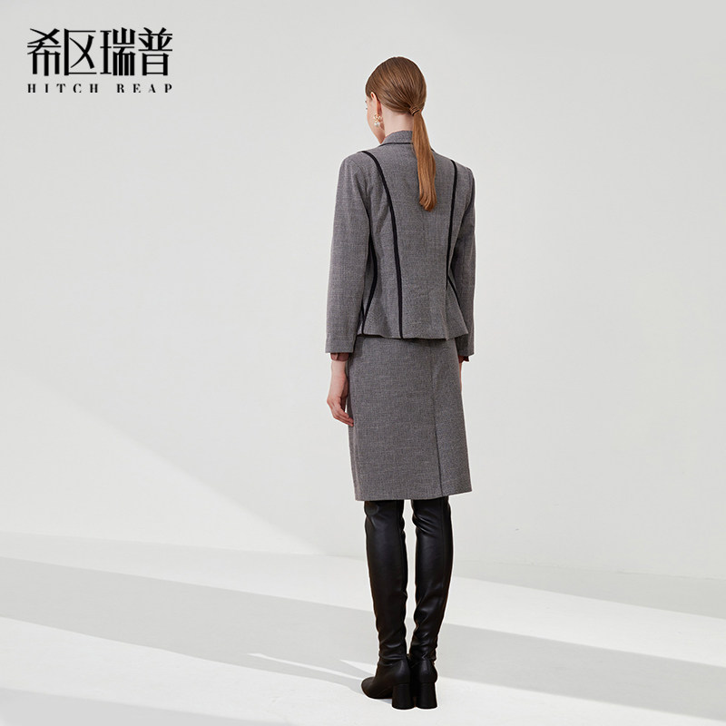 女新款 职业套装 拼接镶边气质外套半身裙套裙 新款 希区瑞普2025秋季