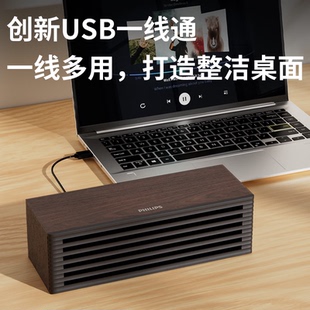 飞利浦复古木质蓝牙迷你音箱HIFI音质双喇叭重低音时尚 小巧桌面