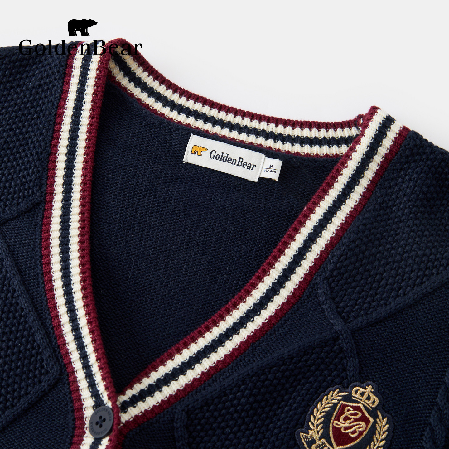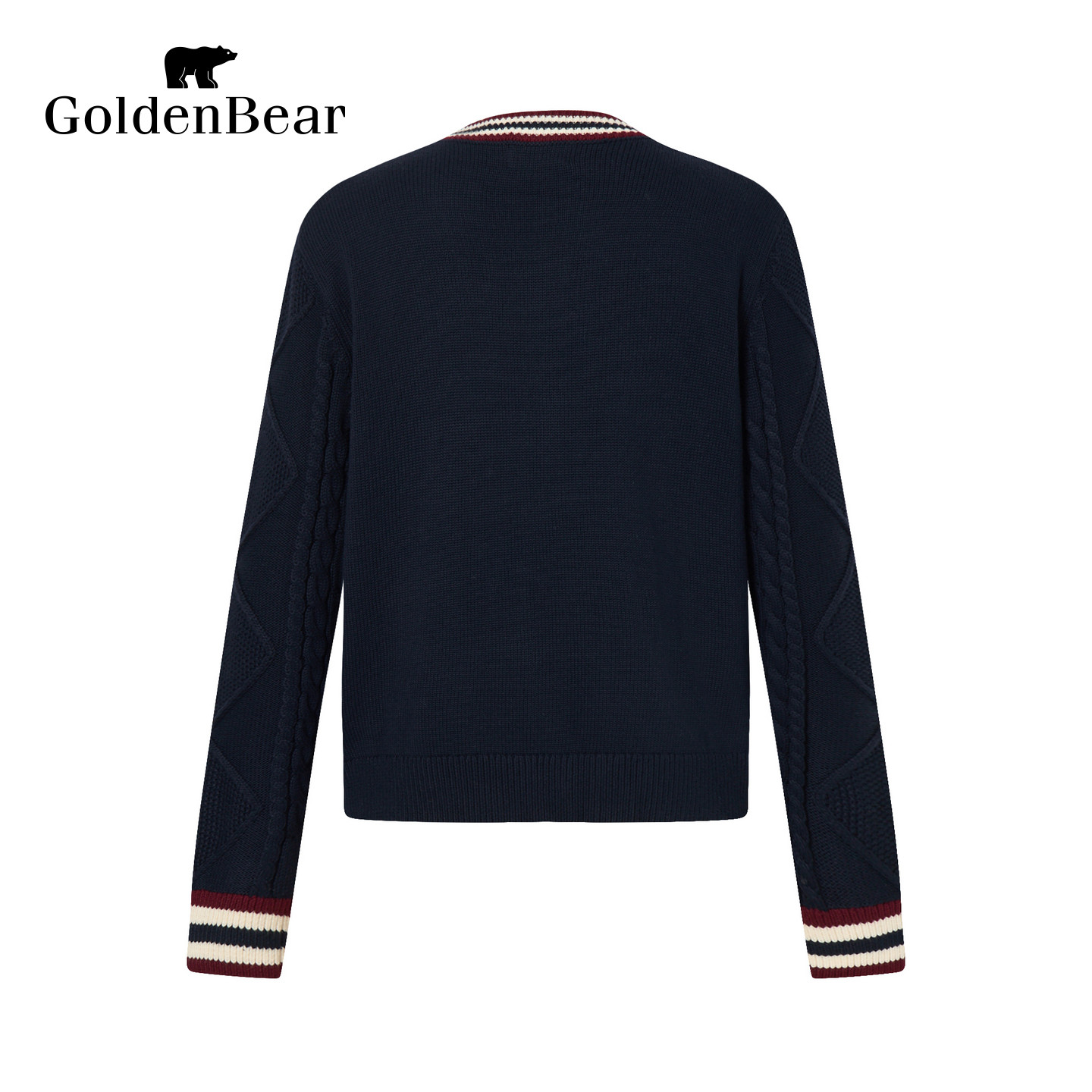 GOLDEN BEAR 长袖 秋季 针织衫 女士撞色V领开衫 新品 新款 金熊