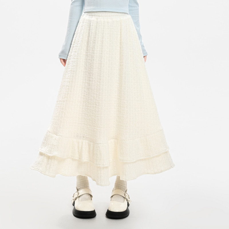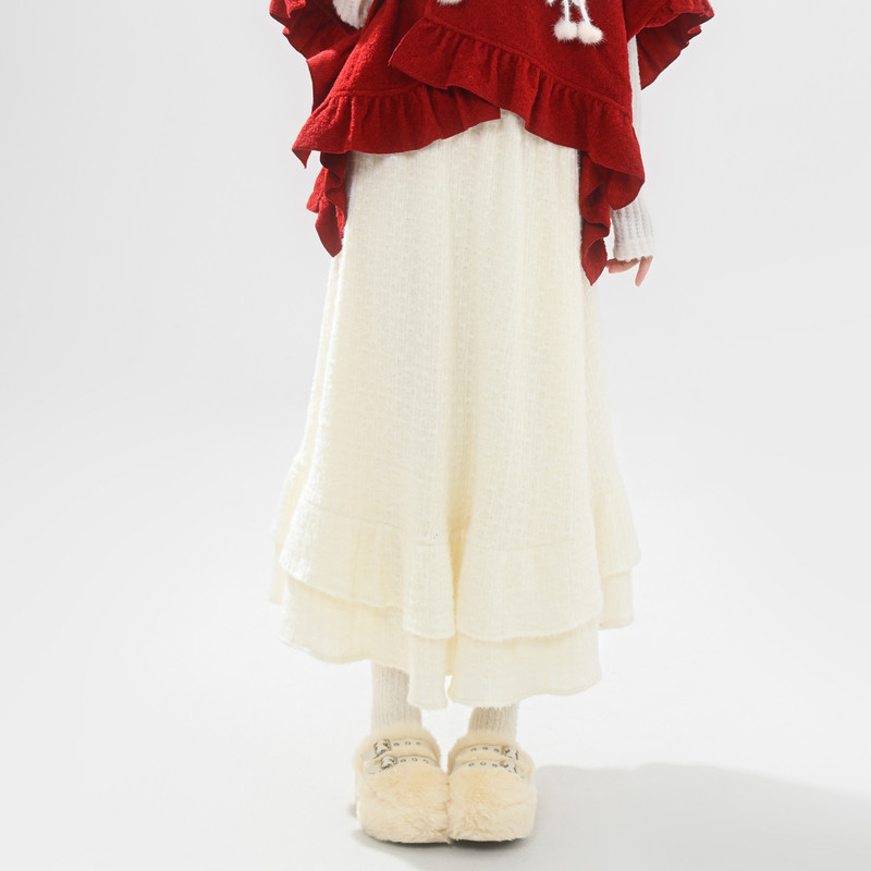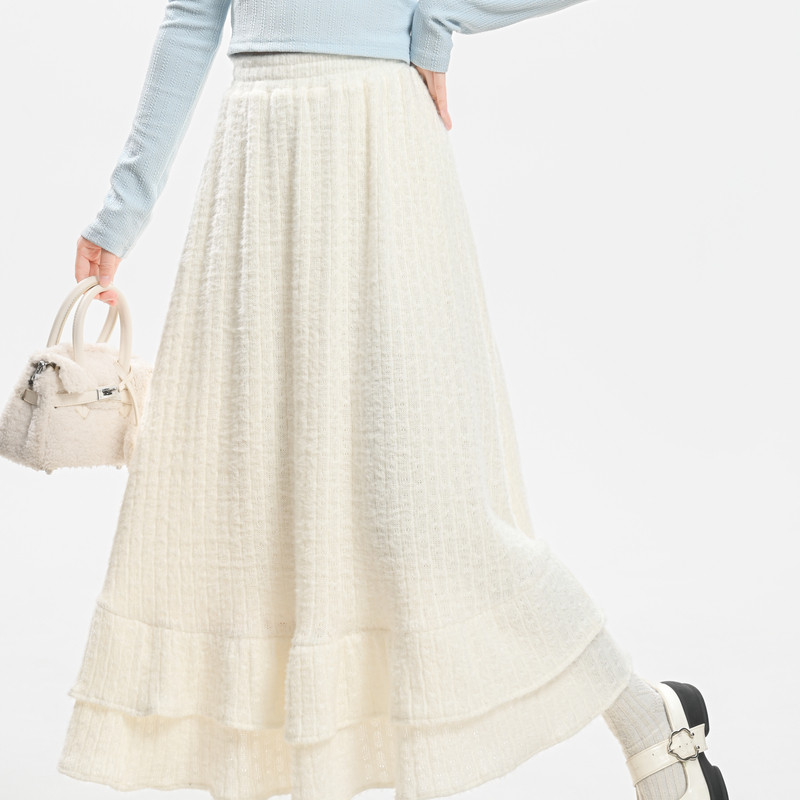森女部落甜美风百搭纯色针织A字裙2025新款 加绒高腰半身裙女 秋季