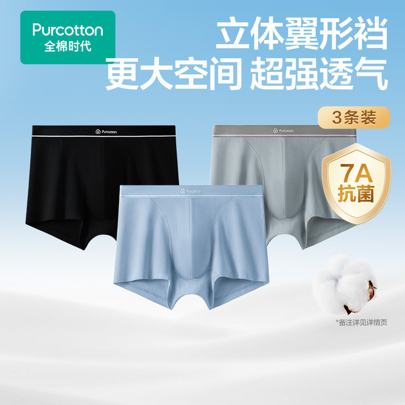 内裤 衩三角裤 7A抗菌3条装 裤 不夹臀加长里裆底裤 全棉时代女士男士