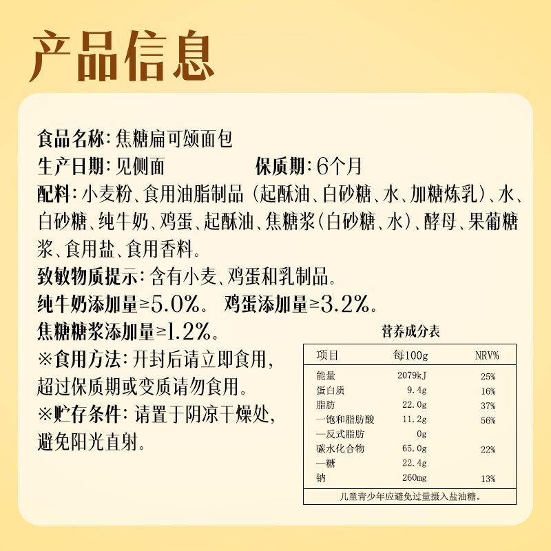 达利园扁可颂面包压扁小面包焦糖薄脆牛角包中式 糕点点心零食早餐