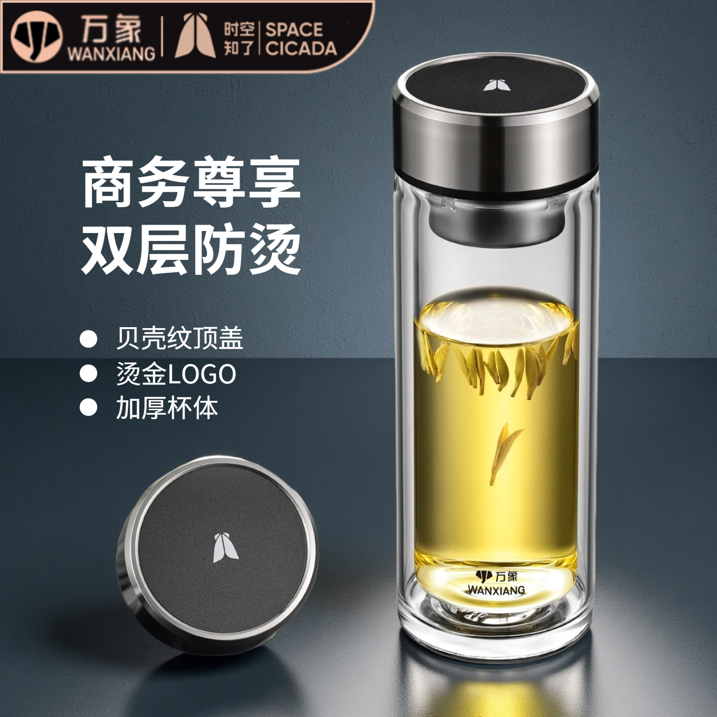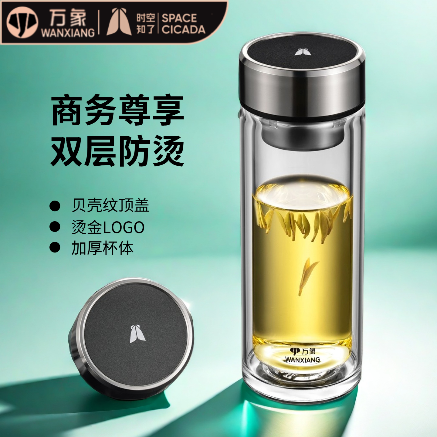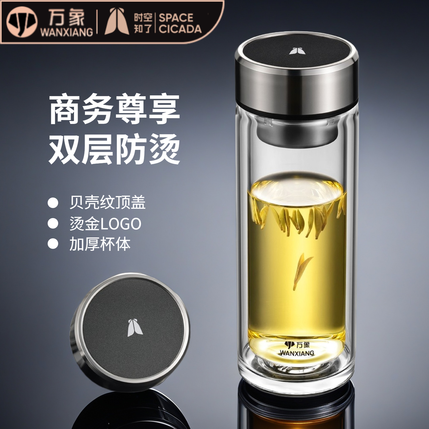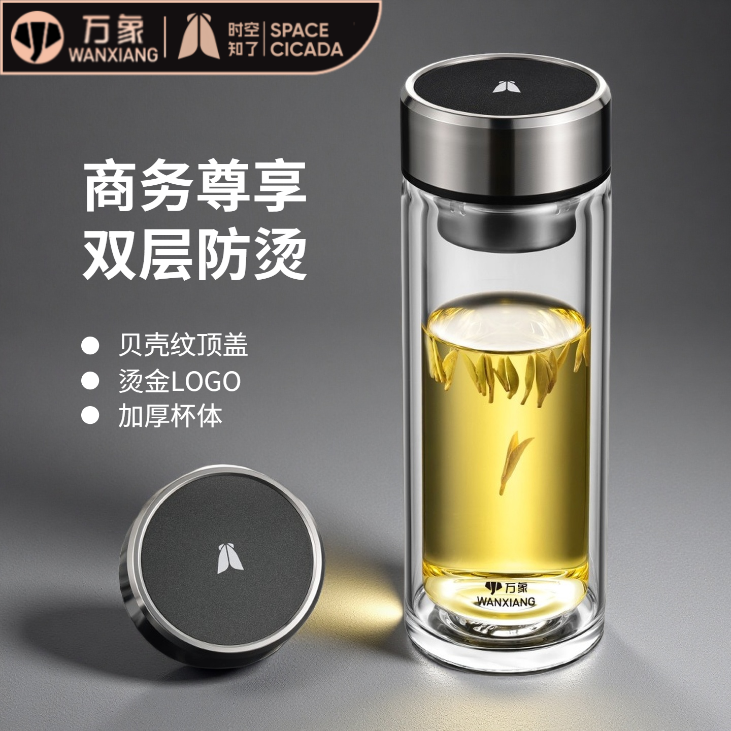 玻璃杯双层水杯男2025新款 家用耐高温茶水分离杯大容量泡茶杯子