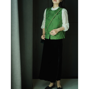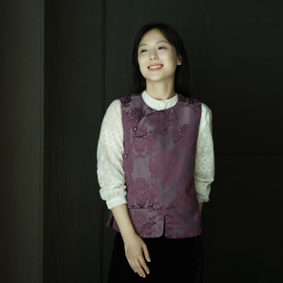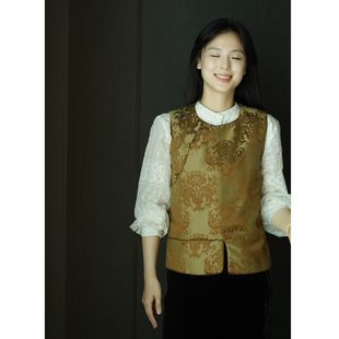 艾绘馆新中式 休闲国风马夹坎肩 复古立体提花织锦马甲背心女秋冬季
