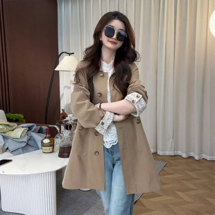 新款 宽松休闲时尚 中长款 口韩版 气质洋气风衣 蕾丝拼接袖 2026早秋季
