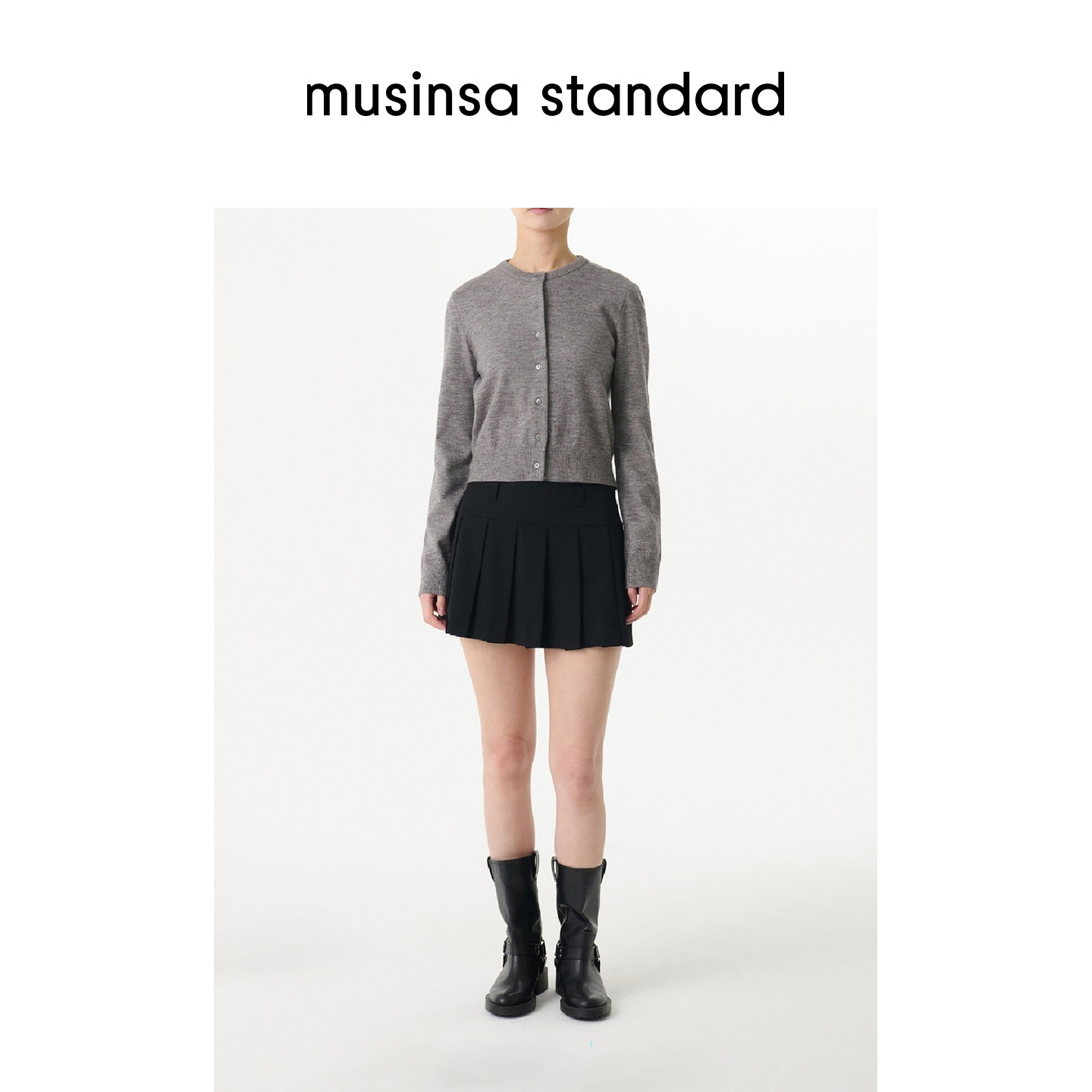半高领设计感针织开衫 新款 洋气紫色立领方扣毛衣女2025年春季 韩版