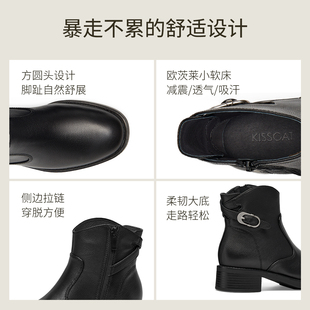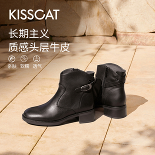 游牧诗人 接吻猫 美拉德西部靴皮带扣骑士短靴加绒 孟佳同款 周也