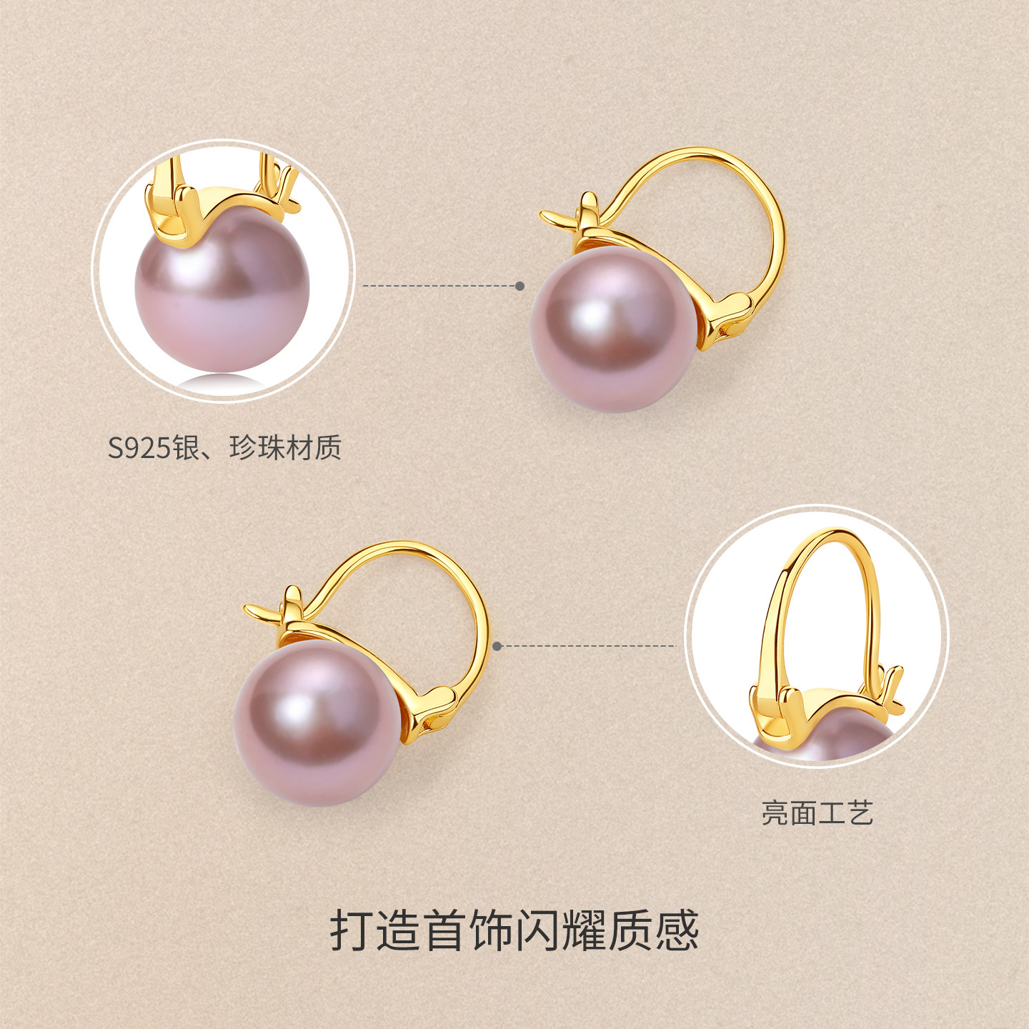 周六福淡水珍珠耳钉女S925银耳饰优雅甜美时尚 送女友跨年礼物