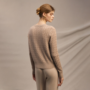 25年秋冬款 鹿王100%山羊绒衫 女圆领绞花纯色百搭亲肤保暖针织衫