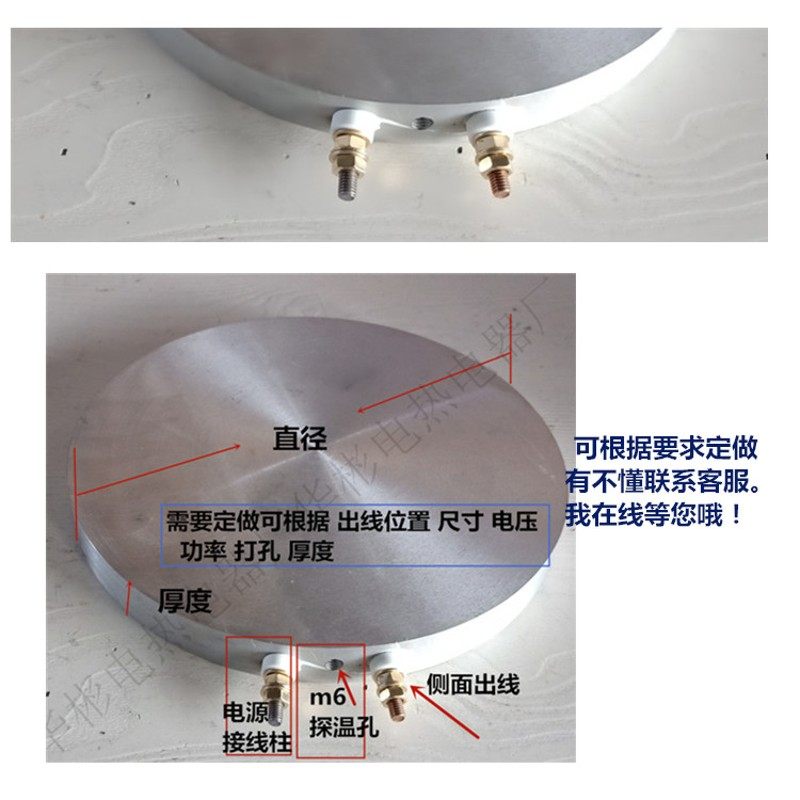 铸铝加热圆板电热板圆盘铝发热板圆形块片铸铜加热平板加热圈定做