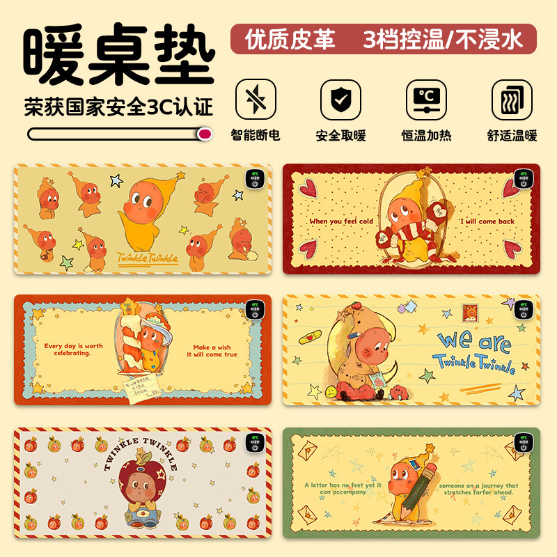 加热鼠标垫可爱卡通星星人桌上暖垫学习办公写字暖桌垫恒温暖手垫