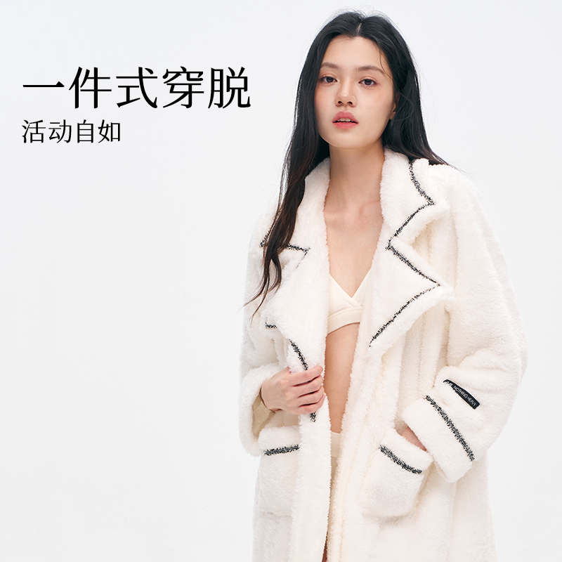 吸水 加厚春秋加绒中长款 从轻浴袍式 睡衣小香风睡袍女冬季