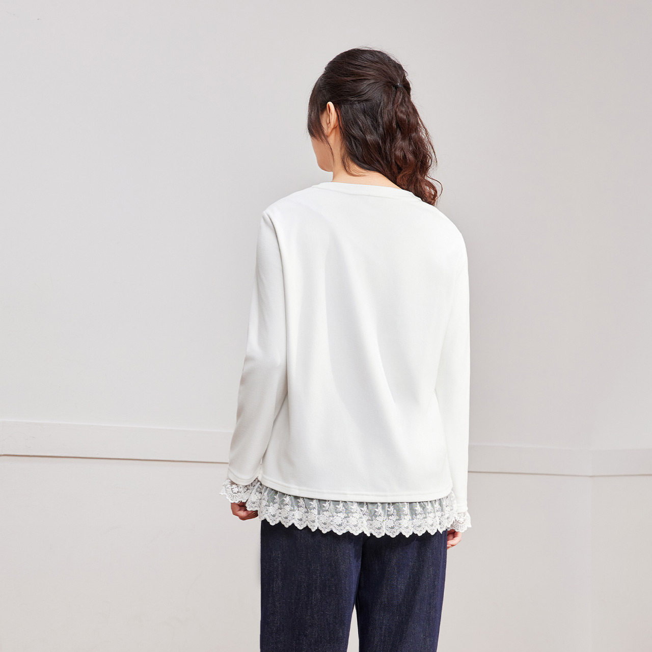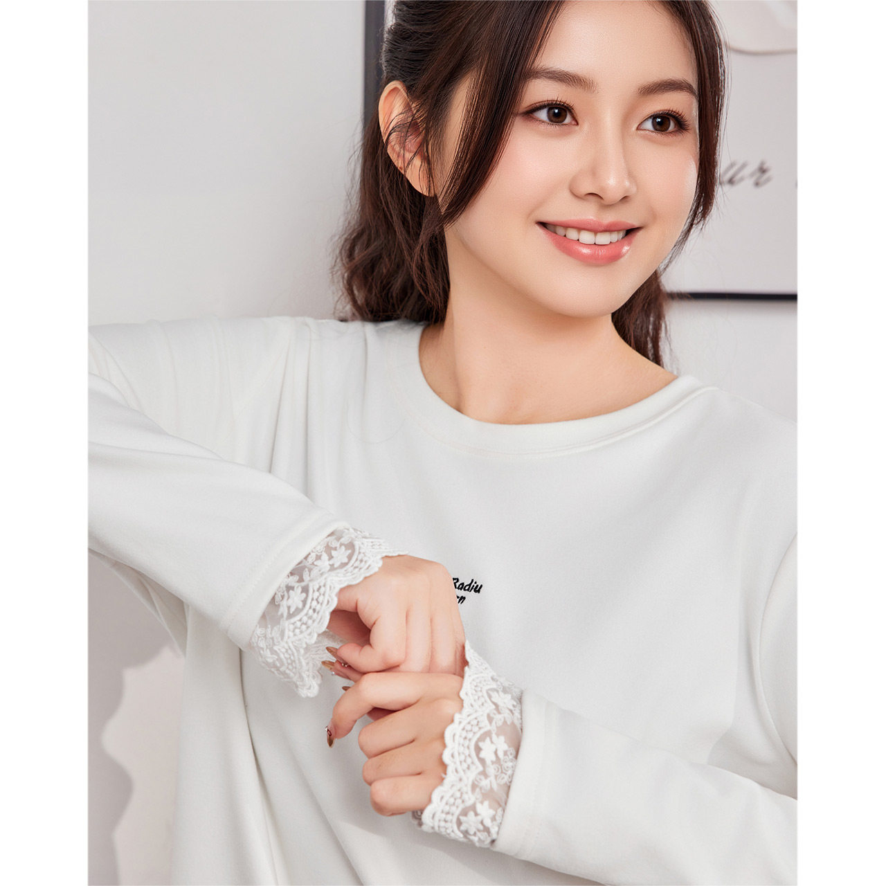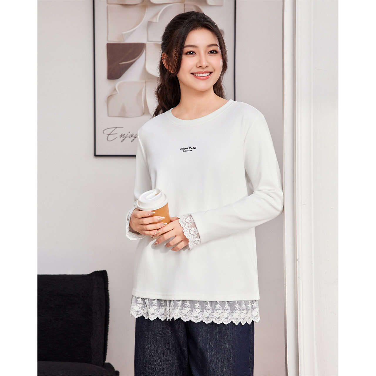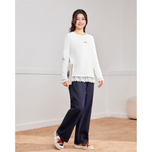 爱依服 2025秋冬新款 微胖 女装 蕾丝拼接设计百搭中上衣 大码 IEF