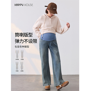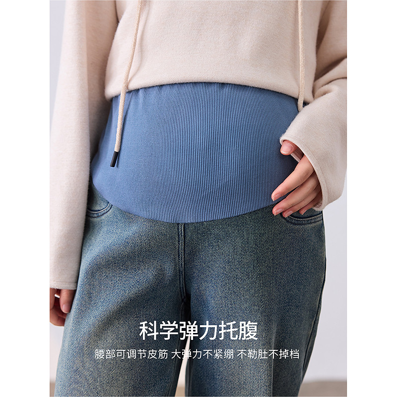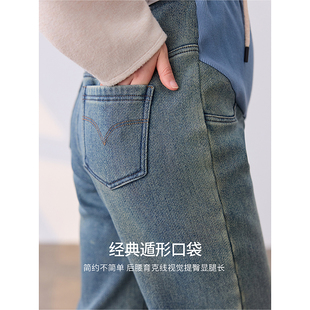 显瘦直筒裤 快乐屋孕妇牛仔裤 外穿加厚托腹裤 孕妇裤 冬 加绒2025新款
