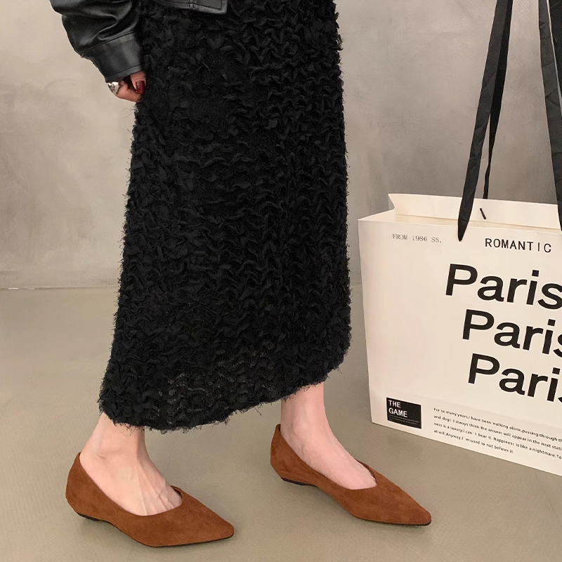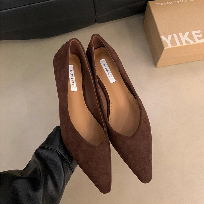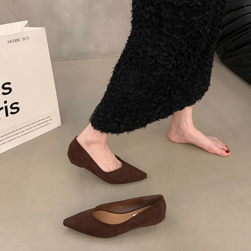 晚风裸色浅口瓢鞋 羊皮版 真皮法式 女夏2025新款 5cm内增高尖头单鞋