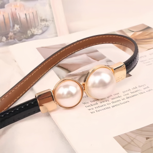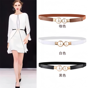 珍珠细腰带女配裙子简约百搭装 连衣裙收腰皮带毛衣腰链配饰 饰衬衫