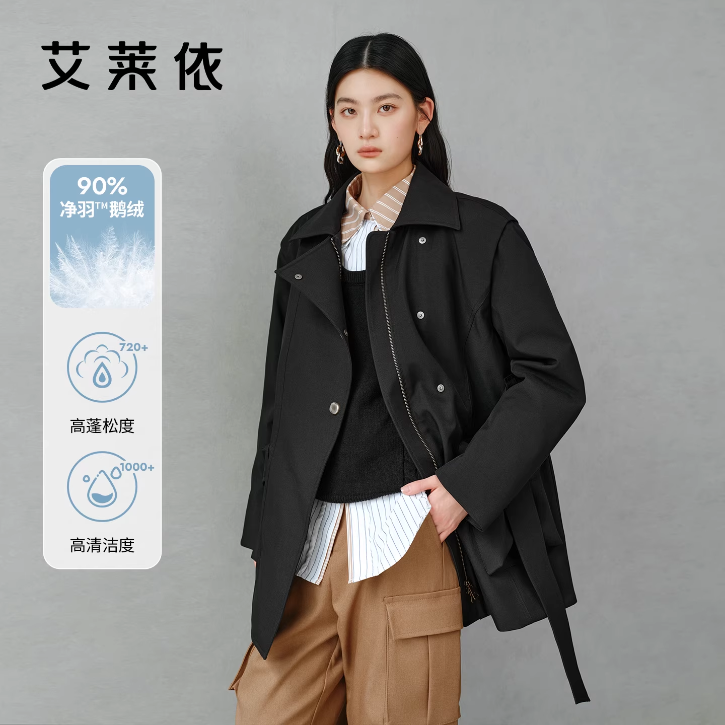 YAYA鸭鸭2025冬情侣款 素 摇粒绒一手长休闲百搭羽绒服 费尔岛元