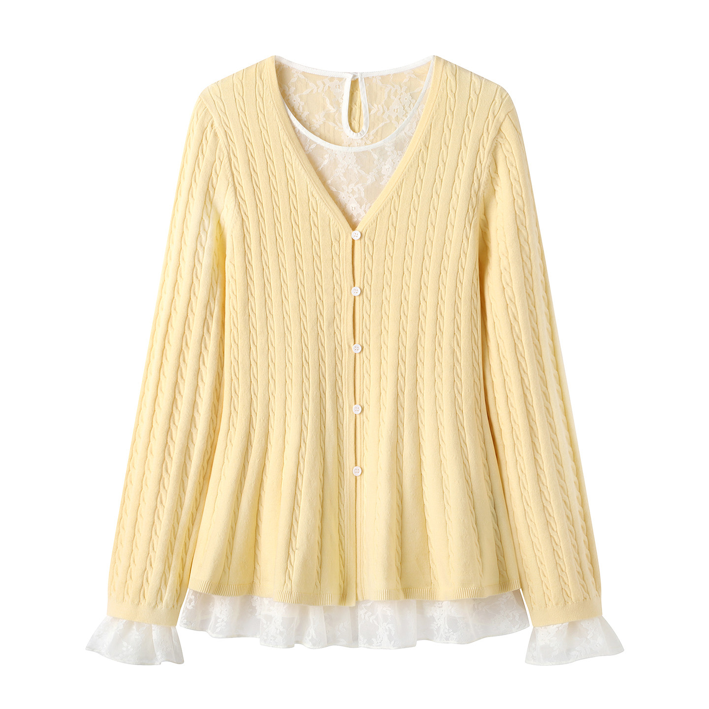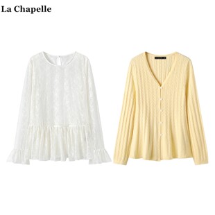 黄色针织开衫 Chapelle小香风蕾丝衫 俩件套叠穿上衣女 拉夏贝尔