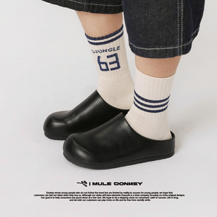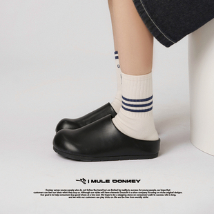 秋冬配裙子外穿加绒包头半拖 女2025新款 鲁鲁蛋 一脚蹬懒人勃肯鞋