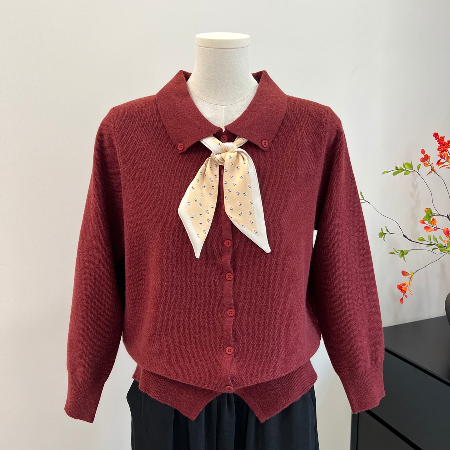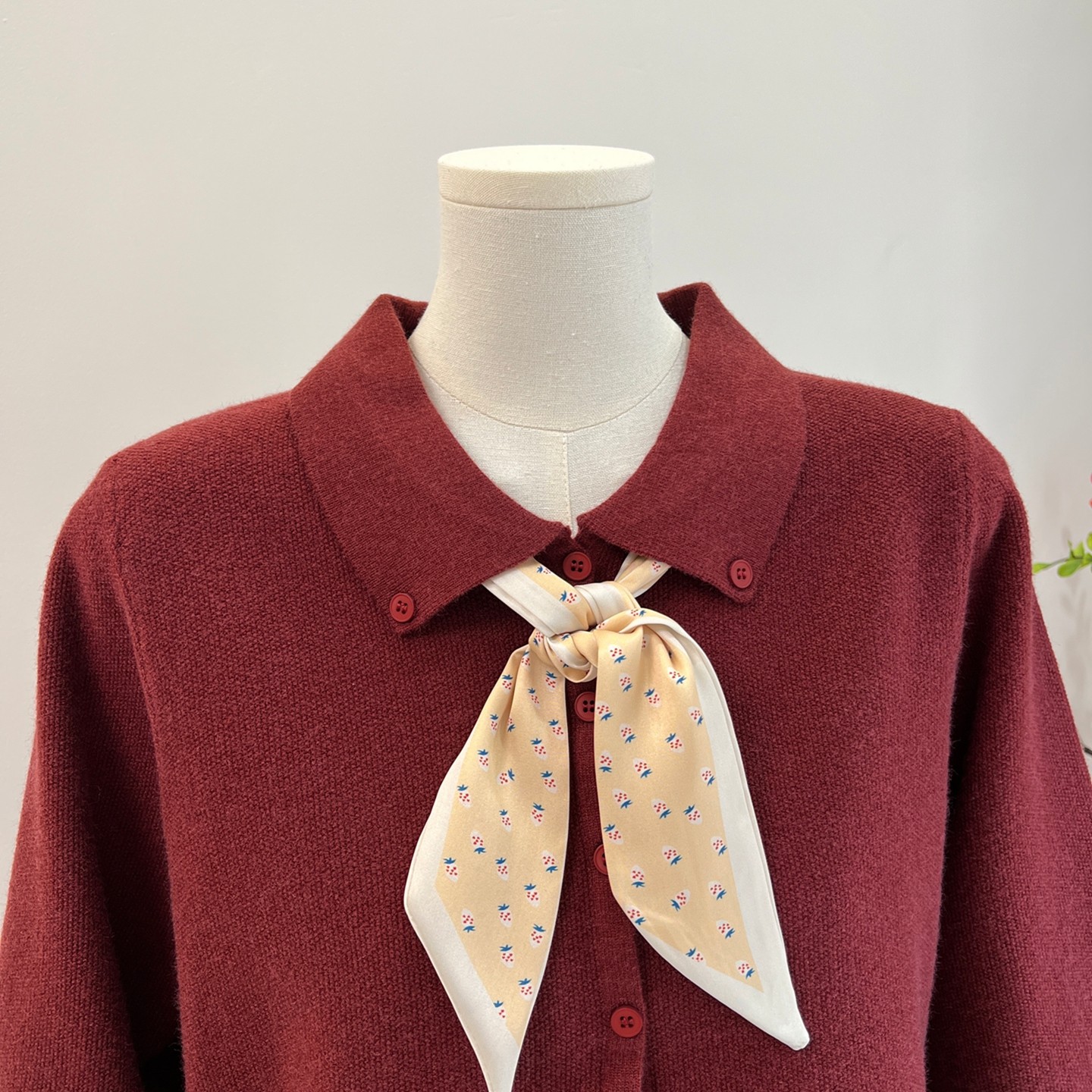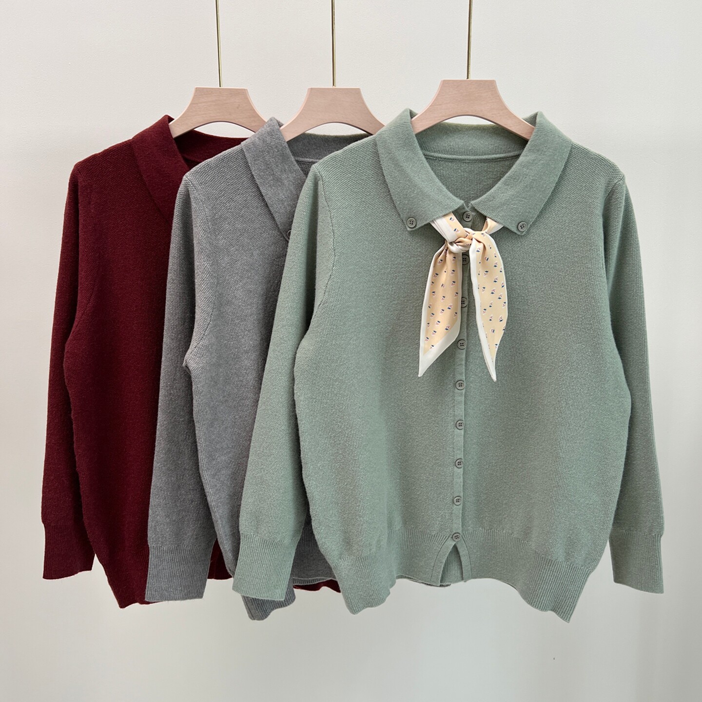 妈妈秋装 2025新款 春秋翻领打底衫 上衣中老年女装 薄毛衣 碎花针织衫