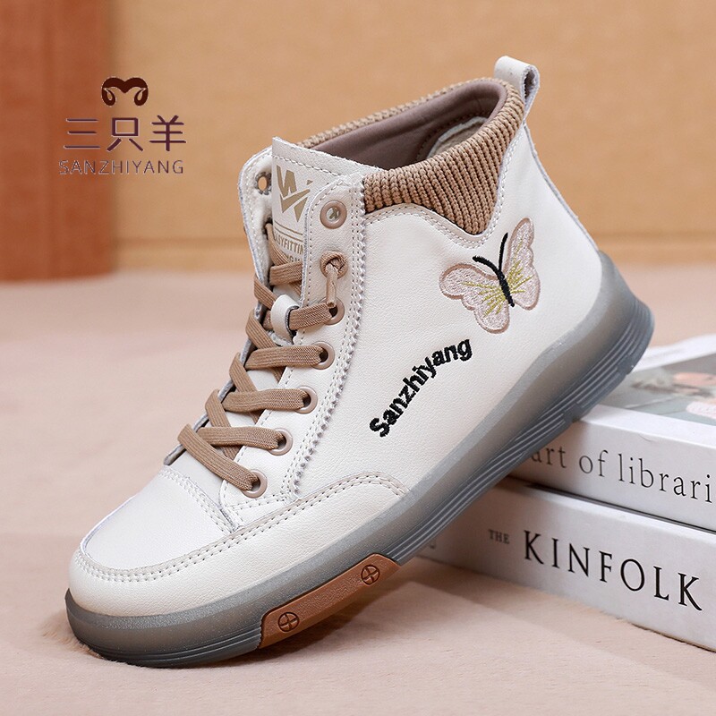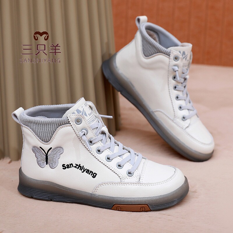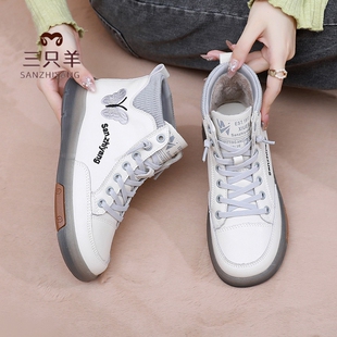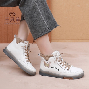 女 防滑耐磨软底小白鞋 三只羊秋冬2025新款 短靴真皮休闲高帮妈妈鞋