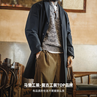 风衣男秋 复古灯芯绒克苏鲁文职大衣宽松外套中长款 马登工装 美式