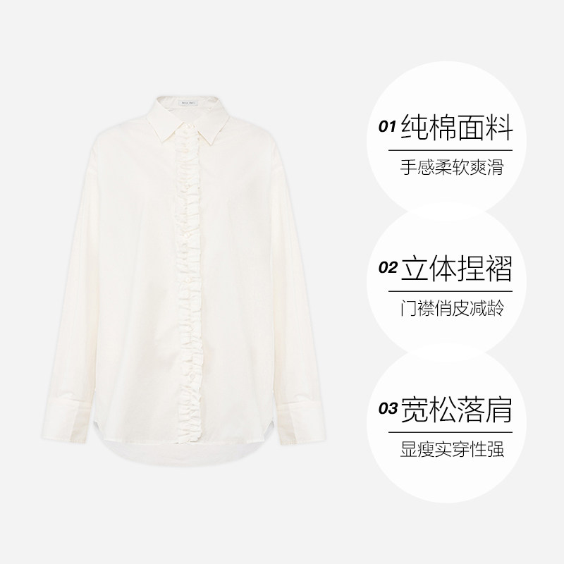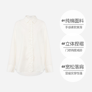 18345620 女长袖 设计师款 佐丹奴2026年春肌理纯棉拼接镂空宽松衬衫