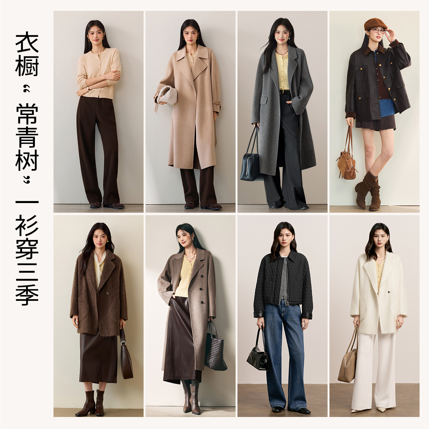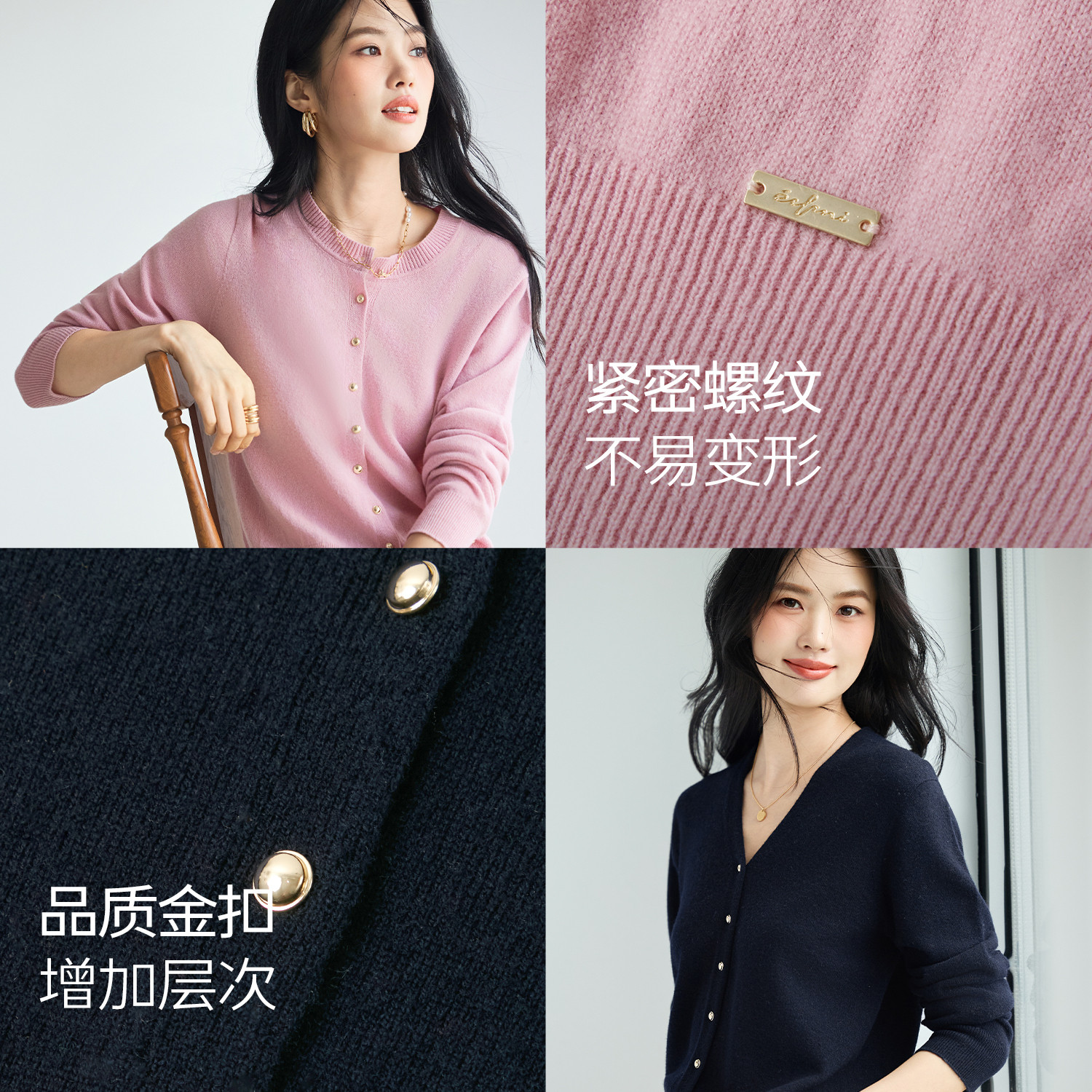 伊芙丽outlets店100&绵羊毛圆领V领单排扣针织开衫 上衣女25秋新款