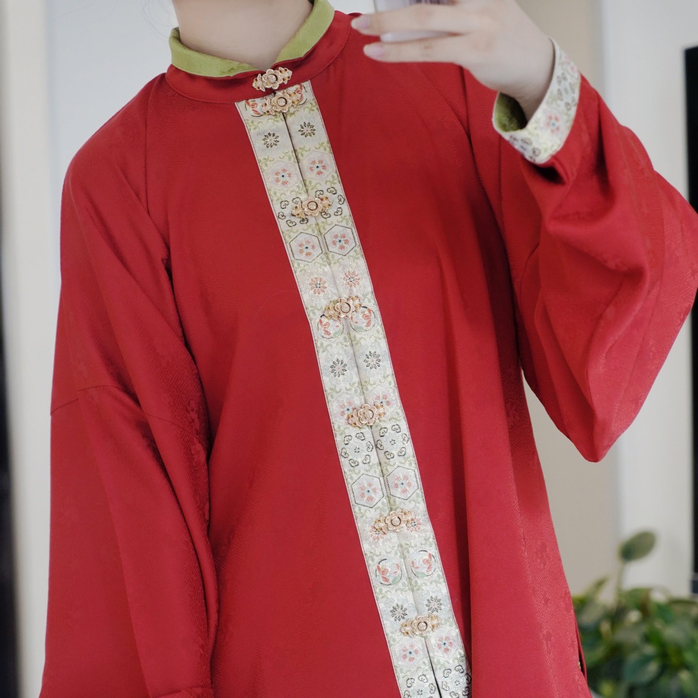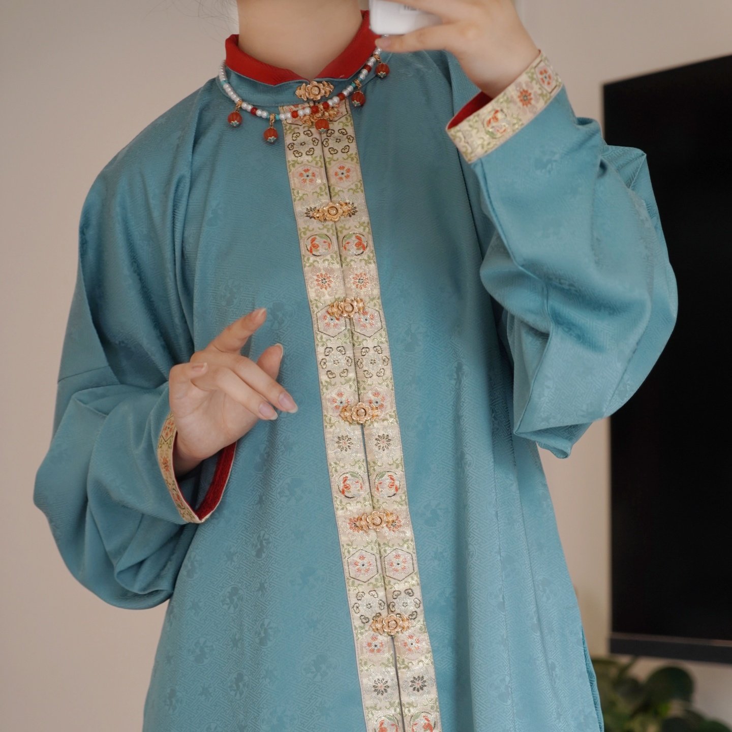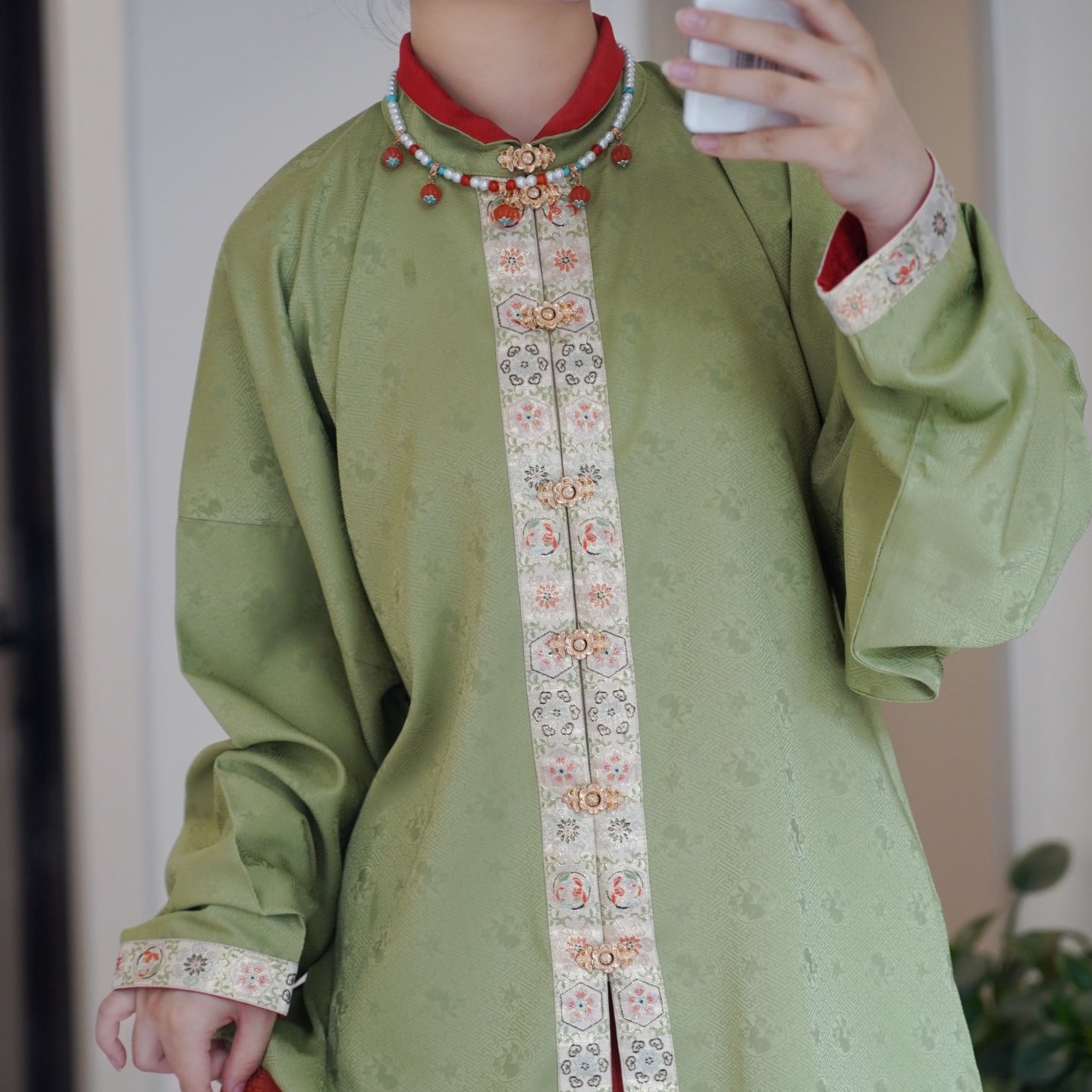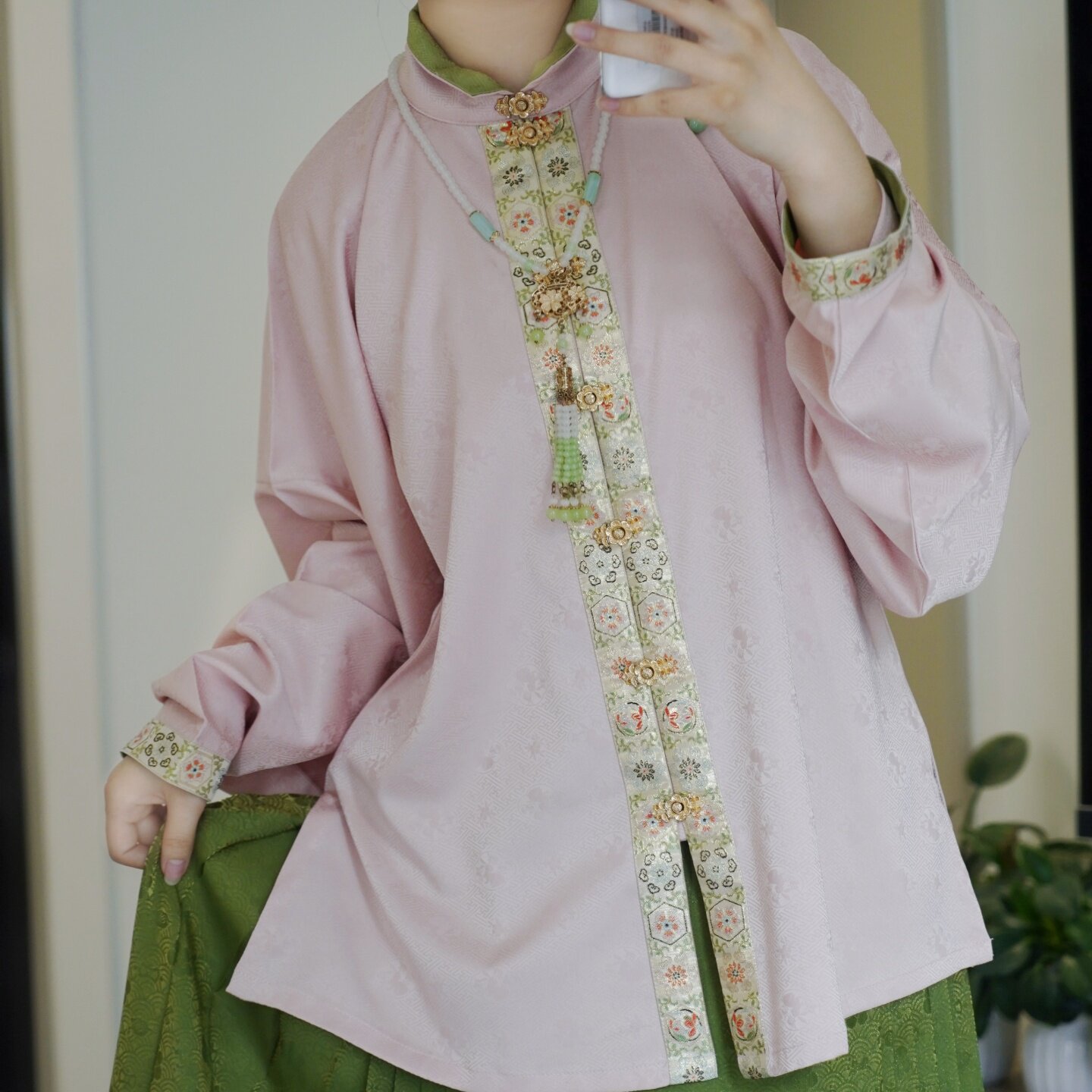两三松立领对襟明制妆花织金弓袋袖 新 马面裙套装 弓袋袖 多宝兔