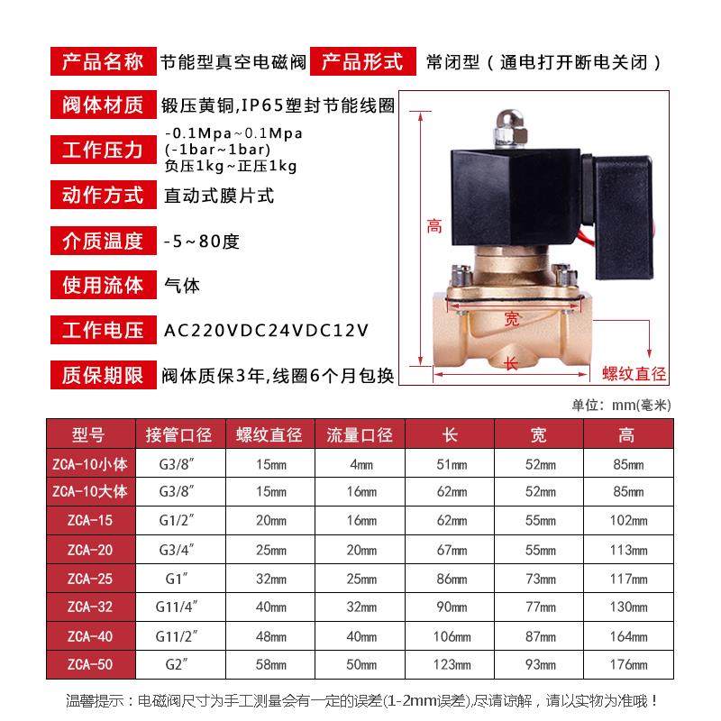 真空泵ZCA全铜电磁开关阀常闭防水节能不发热 4分6分1寸DC24V220V