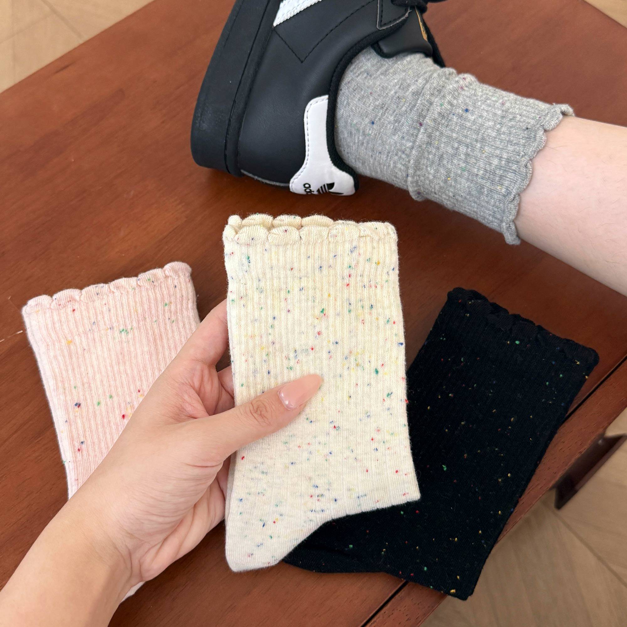 纯棉中筒袜ins潮花边堆堆袜搭配德训鞋 新款 夏天长袜 夏季 袜子女款