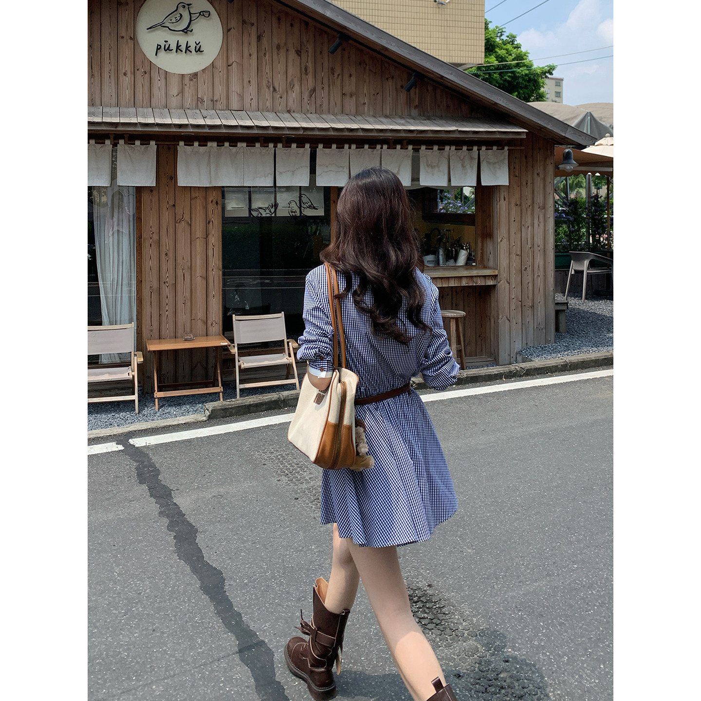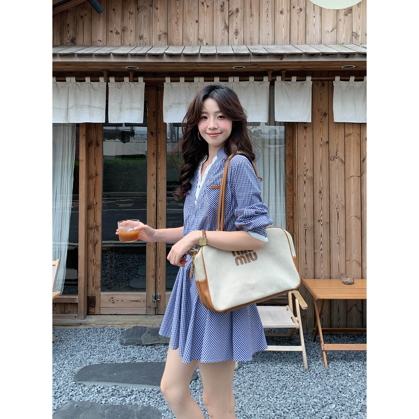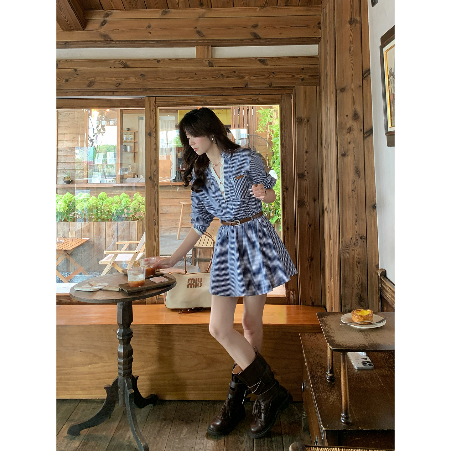 格纹衬衫 韩系高智感撞色拼接长袖 裙带腰带 时髦尖子生 Even一雯