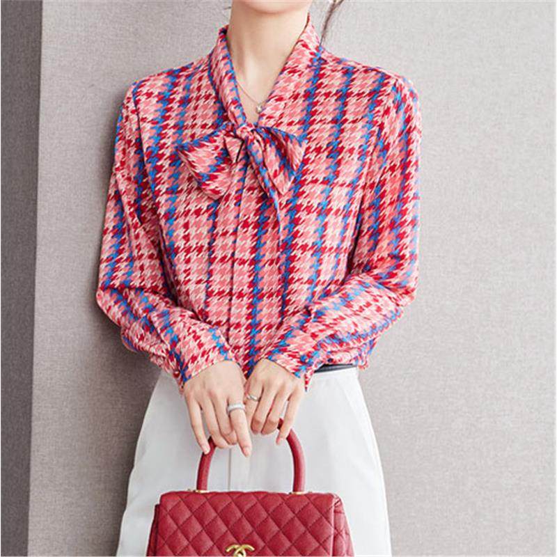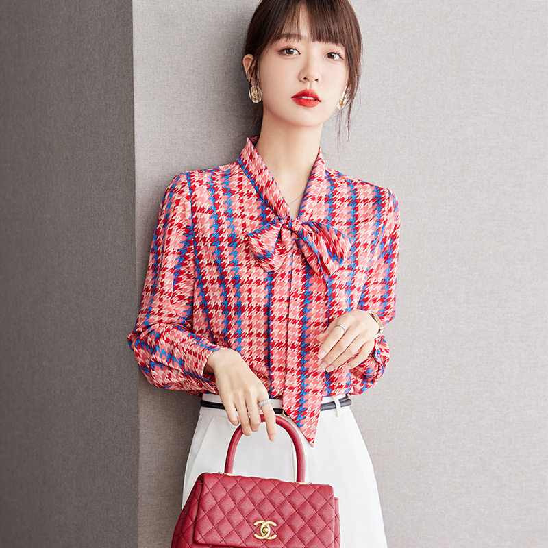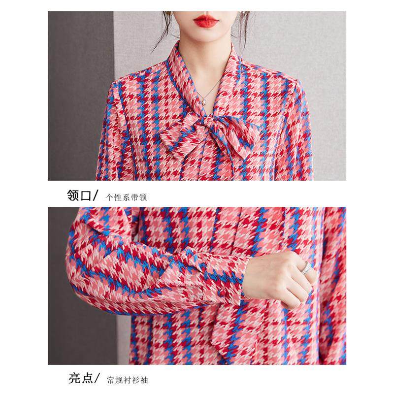 雪纺衬衫 正品 蝴蝶结红色碎花长袖 2025年春秋新款 女衬衣 哥家新女装