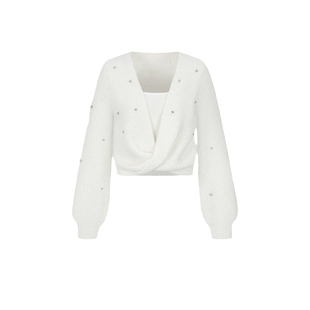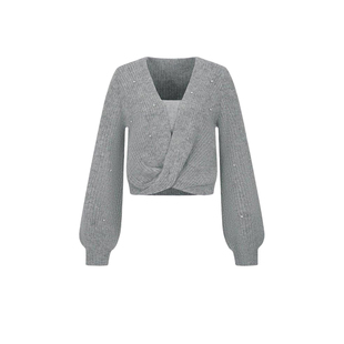 新款 针织衫 法式 饰扭结长袖 女上衣 简约格雷系钉珠装 UR&DC2025秋季