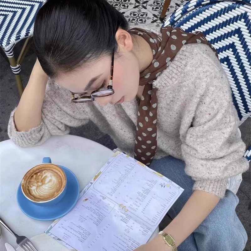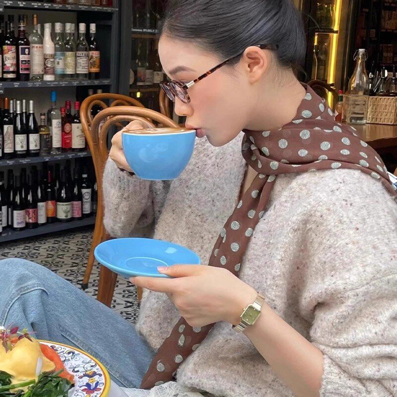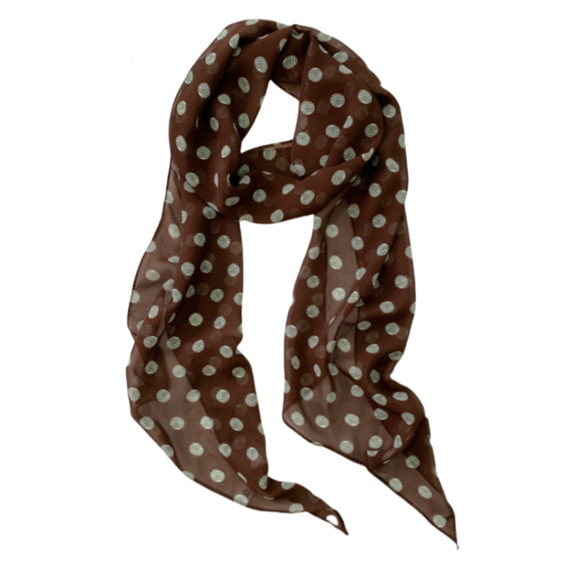 棕色波点丝巾印花高级百搭配饰系脖女2025年新款 发带绑发长条围巾