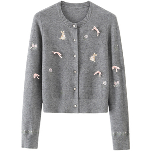 女纯羊绒毛衣针织打底衫 气质美学 100%纯山羊绒开衫 修身 秋冬 法式