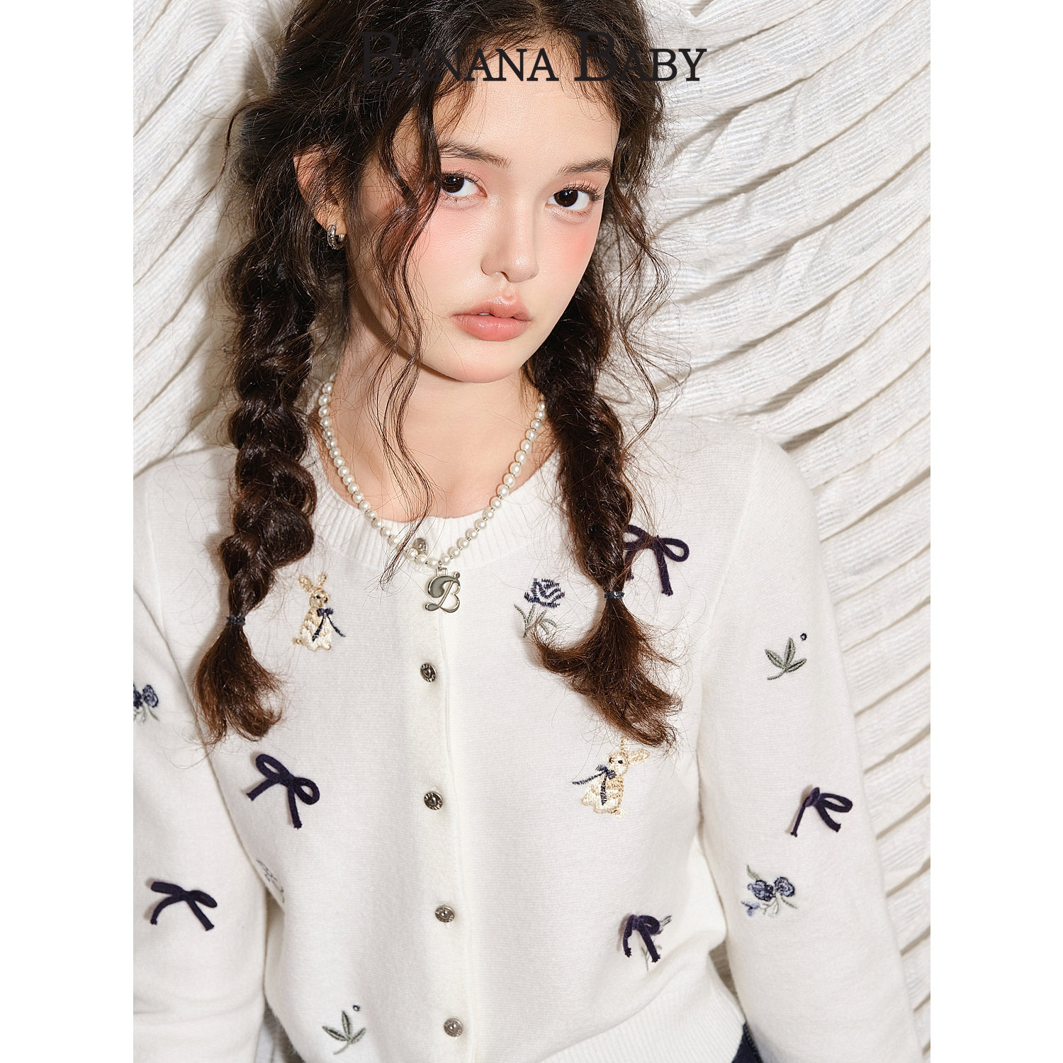 女秋宽松毛衣外套蓝色羊毛上衣 刺绣针织开衫 Thas9i九亿 小狗日记