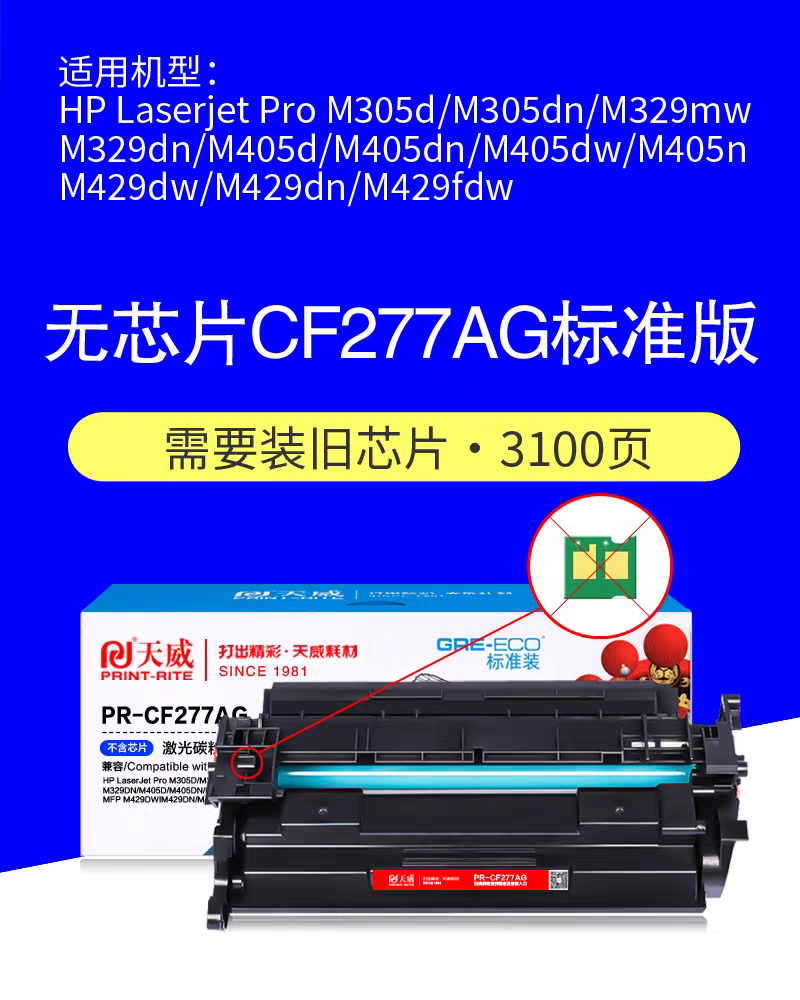 M405dw M329mw 77A晒鼓墨盒 CF277AG适用hp惠普M305dn 天威硒鼓PR