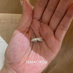 爆款 轻奢碎碎冰戒指女小众设计网红满天星钛钢镀18k金素圈食指环